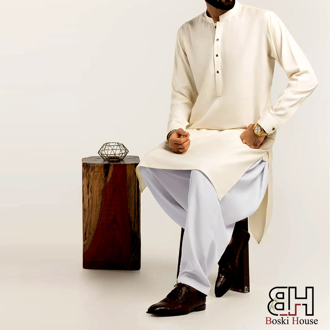 6pound China Boski with White shalwar Latha Premium Quality Fabric
